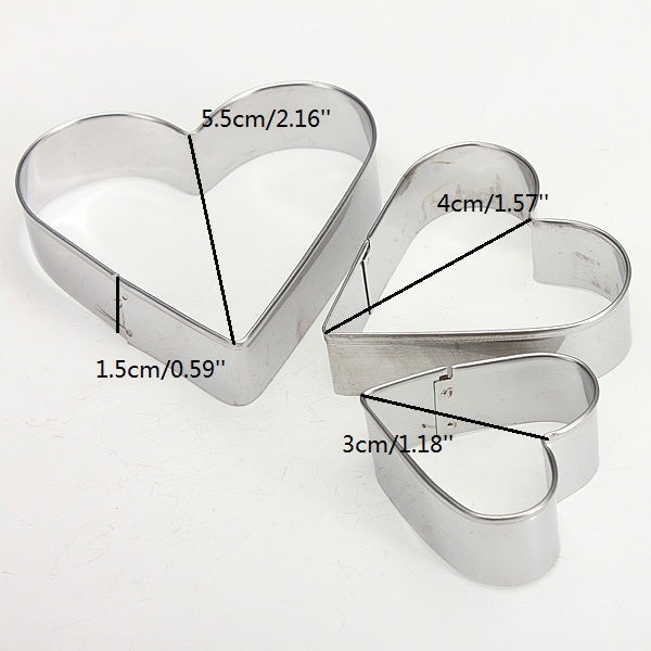 Heart: 3.5cm, 5cm, 6.5cm, 1.5cm high