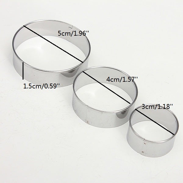 Round: 3cm, 4cm, 5cm, 1.5cm high